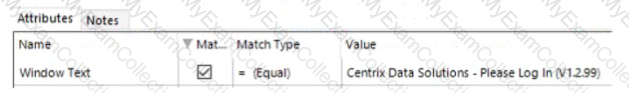 Study the following image which has been taken from a business application which Blue Prism must Attach to, using the Window Text Attribute as the match criteria: