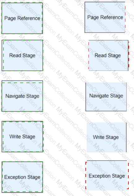 Drag and drop the Blue Prism stage names on the left, onto the placement boxes (A- E) so that the dropped stage name corresponds with the image of the Blue Prism stage beside it: