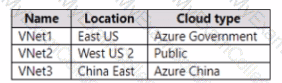 You have an Azure subscription that contains the virtual networks shown in the following table.