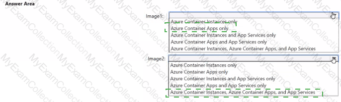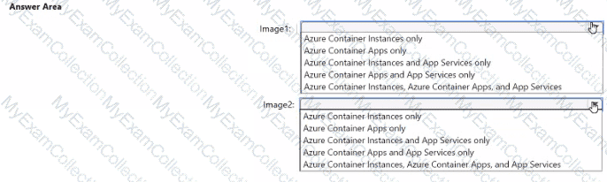 Which Azure services can you use for each image? To answer, select the appropriate options in the answer area.