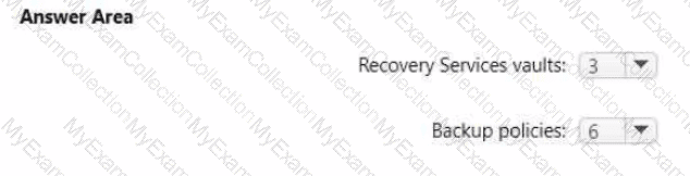 What is the minimum number of Recovery Services vaults and backup policies you should create? To answer, select the appropriate options in the answer area.