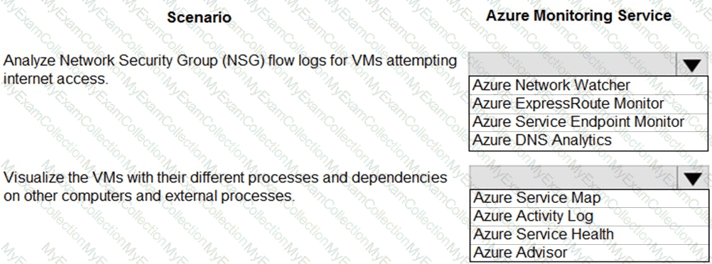Your company deploys several Linux and Windows virtual machines (VMs) to Azure. The VMs are deployed with the Microsoft Dependency Agent and the Microsoft Monitoring Agent installed by using Azure VM extensions. On-premises connectivity has been enabled by using Azure ExpressRoute.