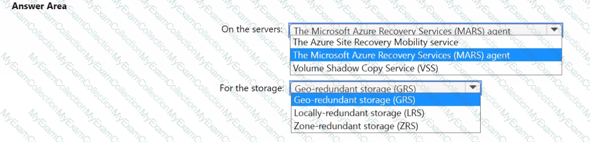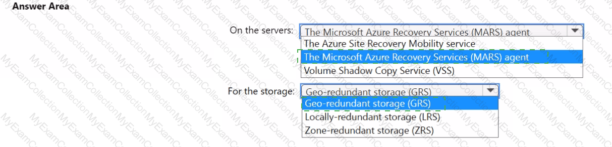 A company has an on-premises file server cbflserver that runs Windows Server 2019. Windows Admin Center manages this server. The company owns an Azure subscription. You need to provide an Azure solution to prevent data loss if the file server fails.