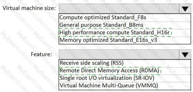 Which virtual machine size and feature should you use? To answer, select the appropriate options in the answer area.