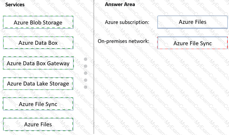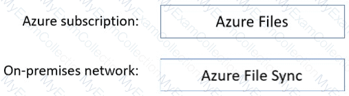 What should you deploy to the Azure subscription and the on-premises network? To answer, drag the appropriate services to the correct locations. Each service may be used once, more than once, or not at all. You may need to drag the split bar between panes or scroll to view content.