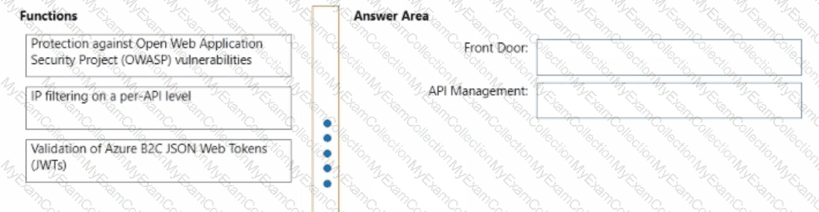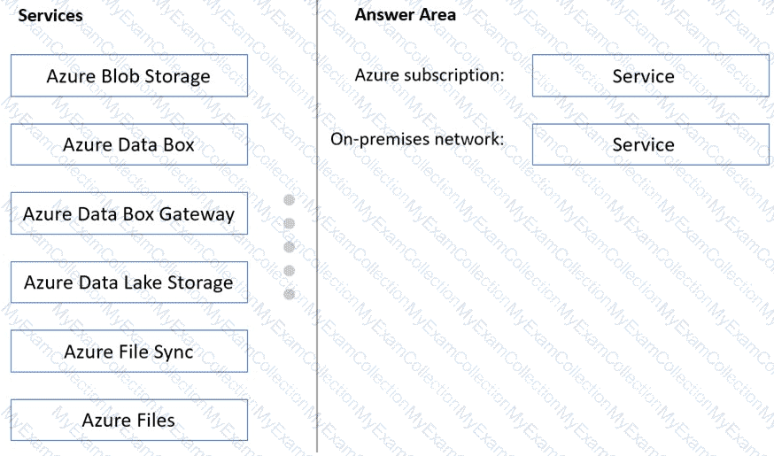 Which Azure services should you include in the design? To answer, drag the appropriate services to the correct targets. Each service may be used once, more than once, or not at all. You may need to drag the split bar between panes or scroll to view content.