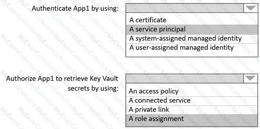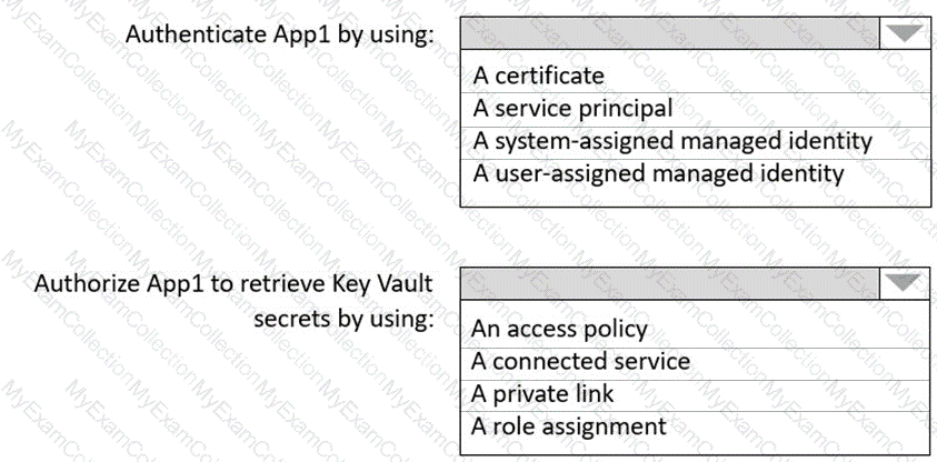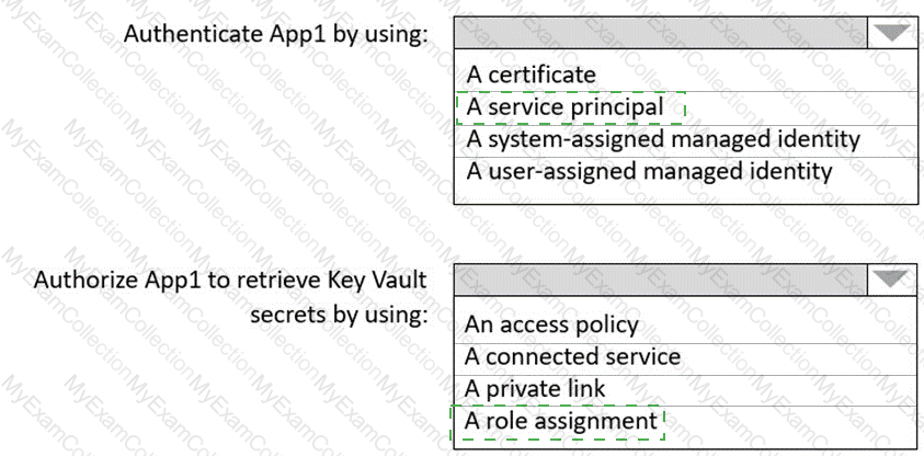 You need to recommend a solution to ensure that App1 can access the third-party credentials and access strings. The solution must meet the security requirements.