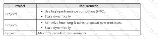 You need to recommend a compute solution for the projects.