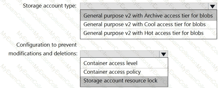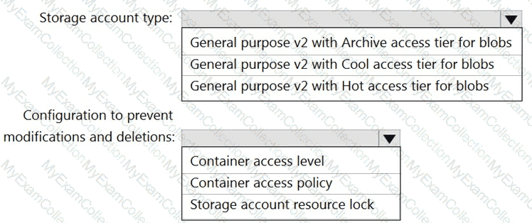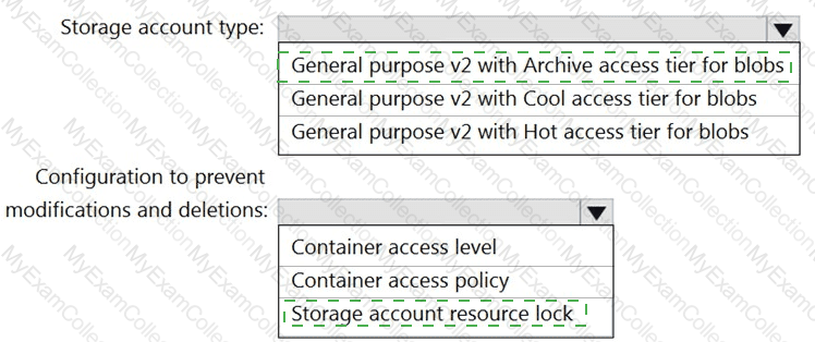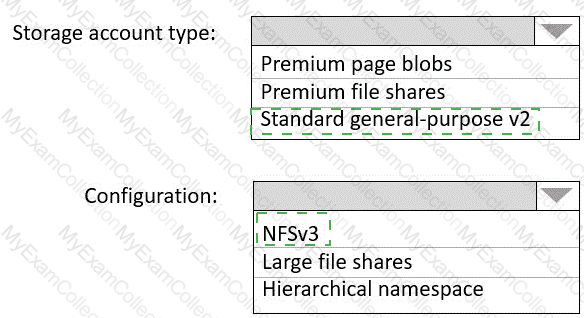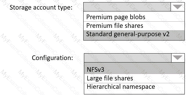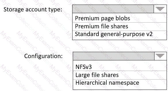Which type of storage should you recommend, and how should you recommend configuring the storage? To answer, select the appropriate options in the answer area.