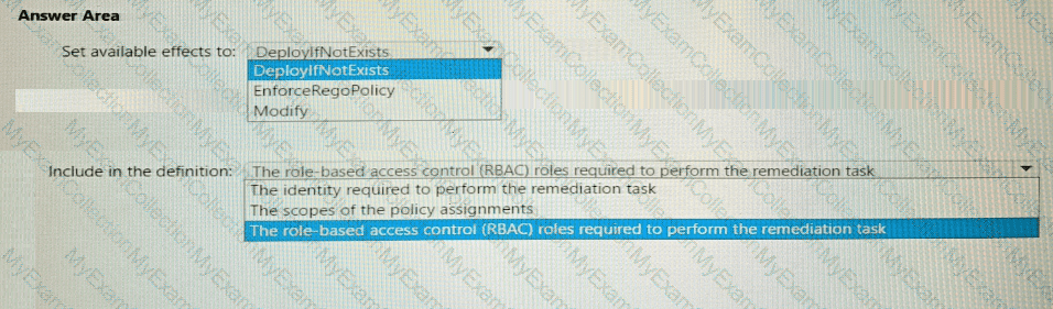 You need to configure an Azure policy to ensure that the Azure SQL databases have TDE enabled. The solution must meet the security and compliance requirements.