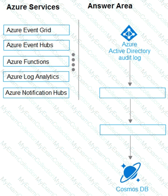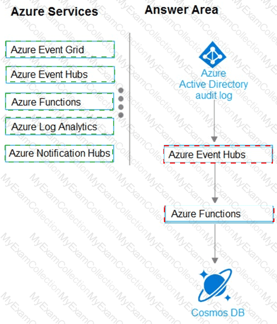 You need to design an architecture to capture the creation of users and the assignment of roles. The captured data must be stored in Azure Cosmos DB.