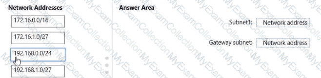 • All Azure virtual machines must be placed on the same subnet named Subnet1.