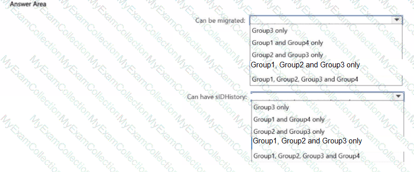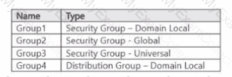 Your network contains two Active Directory Domain Services (AD DS) forests named contoso.com and fabtikam.com. Contoso.com includes the groups shown in the following table.