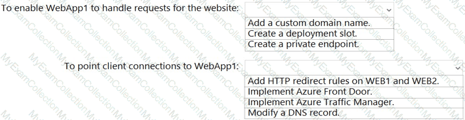 How should you configure WebApp1? To answer, select the appropriate options in the answer area.