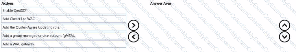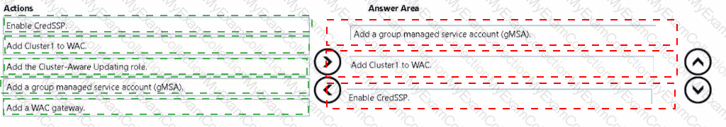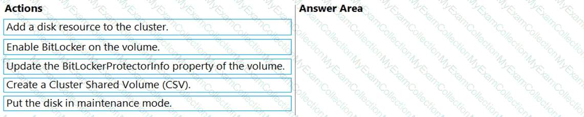 In which order should you perform the actions? To answer, move all actions from the list of actions to the answer area and arrange them in the correct order.