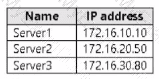 Your network contains an Active Directory Domain Services (AD DS) domain that contains the servers shown in the following table.