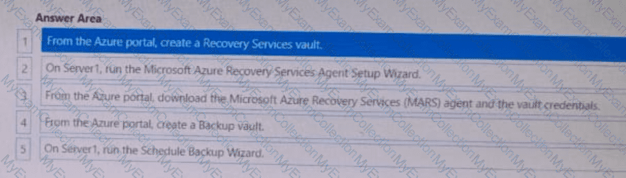 You have an on-premises server named Server1 that runs Windows Server. You need to perform an on-demand backup of the files on Server 1 by using Azure Backup.
