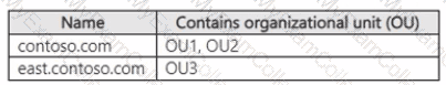 Your on-premises network contains an Active Directory Domain Services (AD DS) forest named contoso.com. The forest contains the domains shown in the following table.