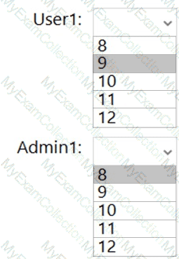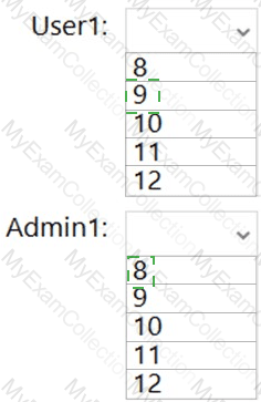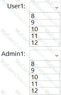 What is the effective minimum password length for User1 and Admin1? To answer, select the appropriate options in the answer area.