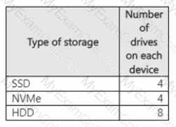 You have four servers that run Windows Server. Each server has the direct-attached storage (DAS) devices shown in the following table.