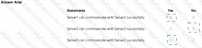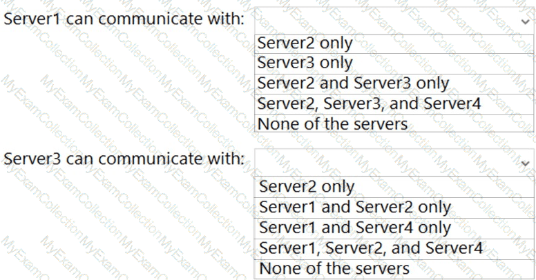 With which servers can Server1 and Server3 communicate? To answer, select the appropriate options in the answer area.
