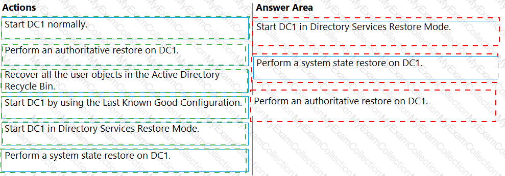 Your network contains an Active Directory Domain Services (AD DS) domain that has the Active Directory Recycle Bin enabled. The domain contains two domain controllers named DC1 and DC2. The system state of the domain controllers is backed up daily at 23:00 by using Windows Server Backup.