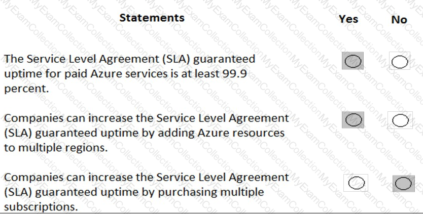 For each of the following statements, select Yes if the statement is true. Otherwise, select No.