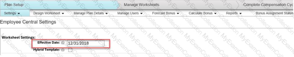Refer to the screenshot below. When implementing an Employee Central-integrated Variable Pay template, to which of the following does the highlighted Effective Date refer?
