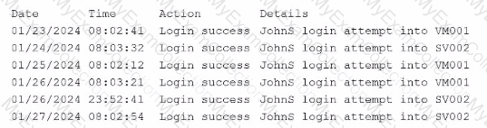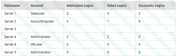 A company’sSIEMis designed to associate the company’sasset inventorywith user events. Given the following report: