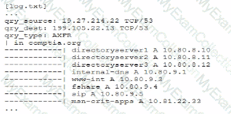 A security engineer receives an alert from the SIEM platform indicating a possible malicious action on the internal network. The engineer generates a report that outputs the logs associated with the incident: