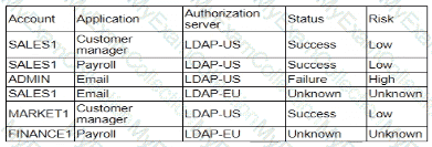 A user reports application access issues to the help desk. The help desk reviews the logs for the user: