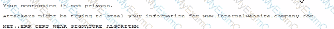A security analyst received a report that an internal web page is down after a company-wide update to the web browser Given the following error message: