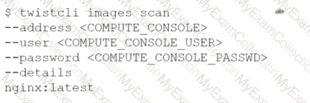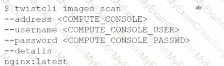 Which command should be used in the Prisma Cloud twistcli tool to scan the nginx:latest image for vulnerabilities and compliance issues?