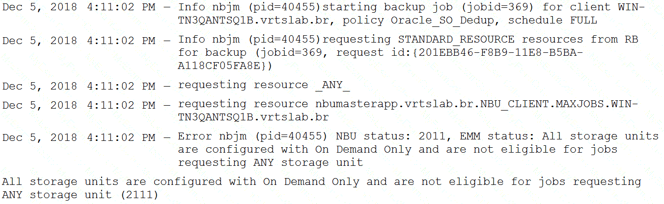 Error nbjm (pid=40455) NBU status: 2111, EMM status: All storage units are configured with On Demand Onl