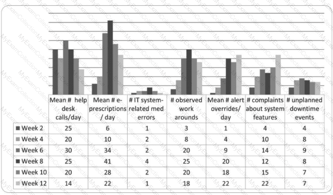 The chart below reflects the 12-week period following implementation of a new electronic health record (EHR) at an outpatient clinic.