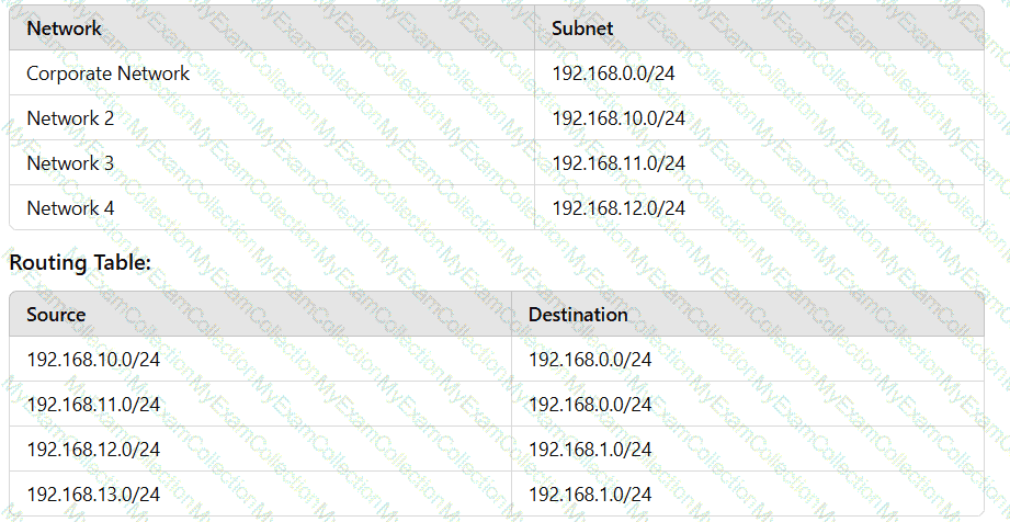An administrator configures three subnets to the corporate network. All servers should communicate with the main corporate network and access the internet. The administrator creates the following configurations: