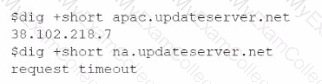 A newly configured VM fails to run application updates despite having internet access. The updates download automatically from a third-party network. Given the following output: