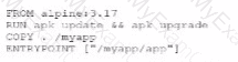 A security engineer Identifies a vulnerability m a containerized application. The vulnerability can be exploited by a privileged process to read tie content of the host's memory. The security engineer reviews the following Dockerfile to determine a solution to mitigate similar exploits: