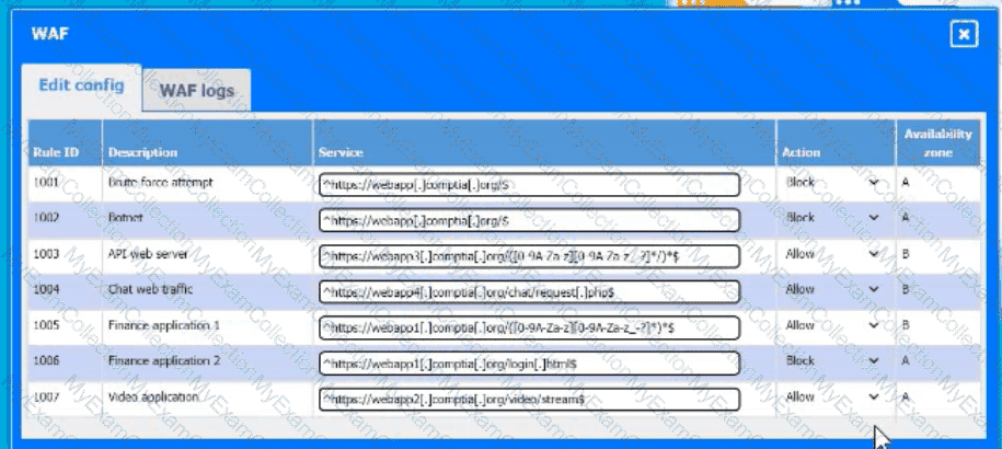 Click on each device and resource. Review the configurations, logs, and characteristics of each node in the architecture to diagnose the issue. Then, make the necessary changes to the WAF configuration to remediate the issue.