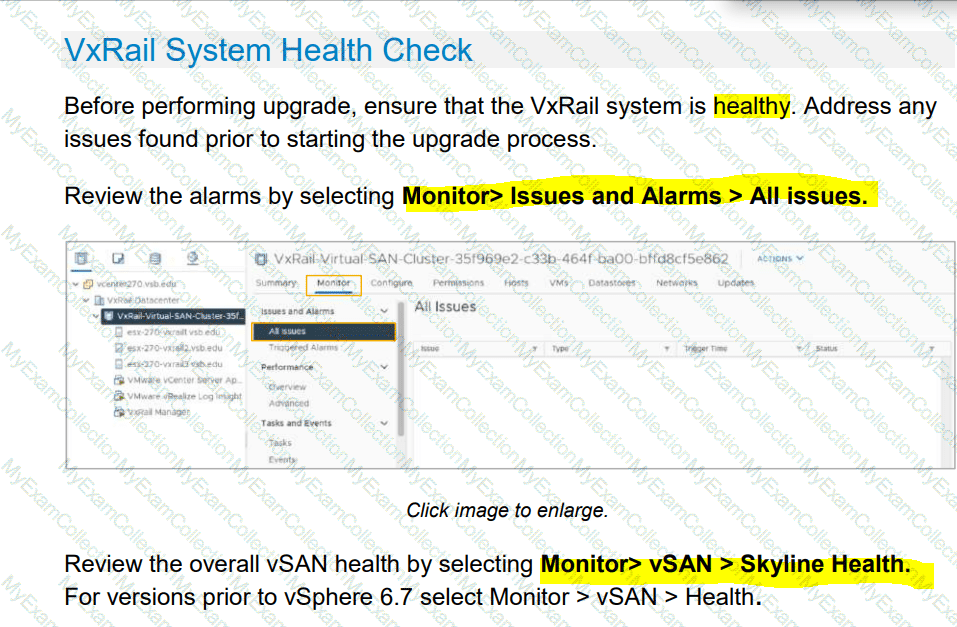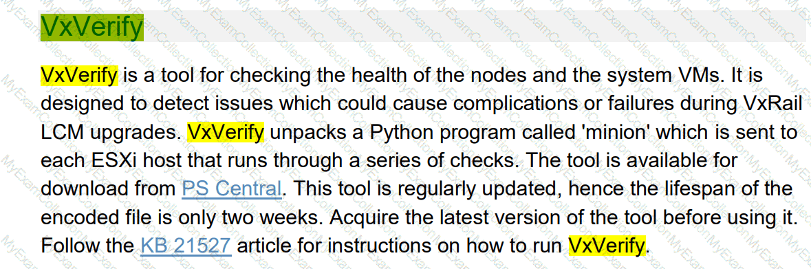 A systems engineer needs to check the health of the nodes and the system VMs to prevent complications or failures during VxRail upgrades. Which tool must be used to perform the task?