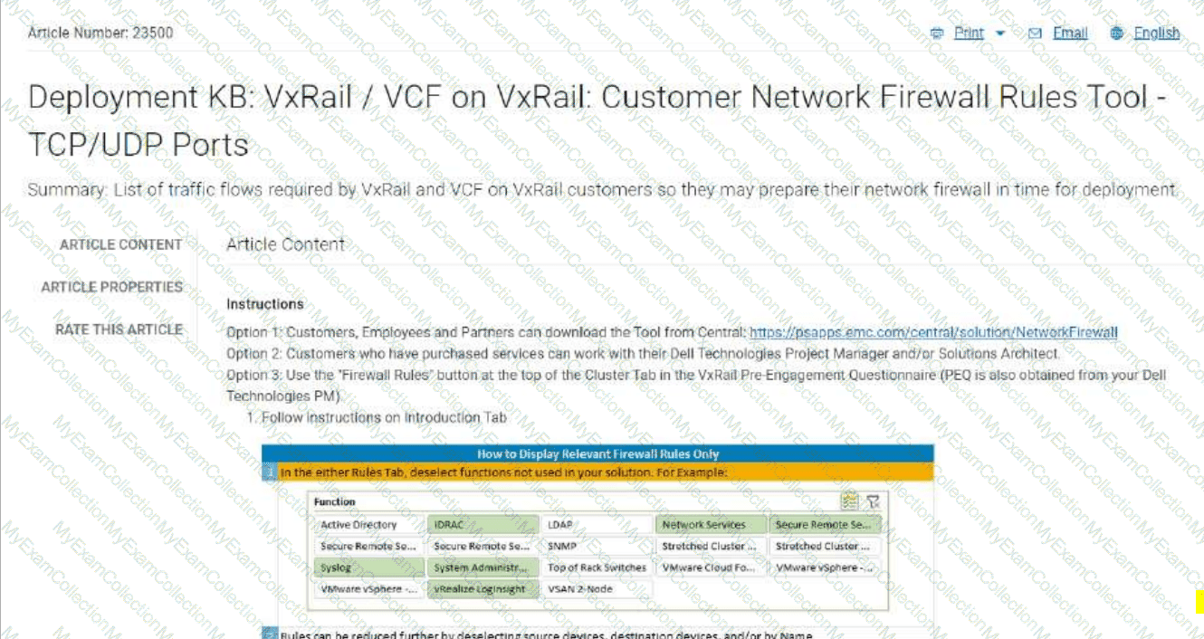An implementation engineer is configuring the network firewall to support a VxRail installation. Where can they find the necessary firewall rules?