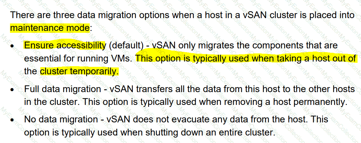 An implementation engineer places a VxRail node into maintenance mode using the Ensure accessibility setting What is the engineer likely planning to do?