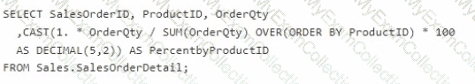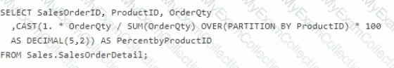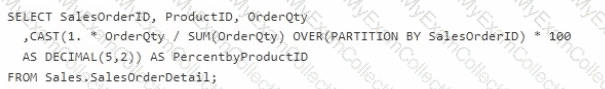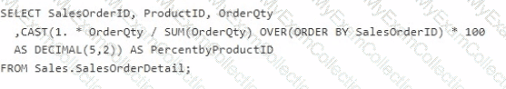 You have a Fabric warehouse that contains a table named SalesOrderDetail. SalesOrderDetail contains three columns named OrderQty, ProductID and SalesOrderlD. SalesOrderDetail contains one row per combination of SalesOrderlD and ProductID.