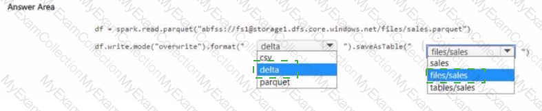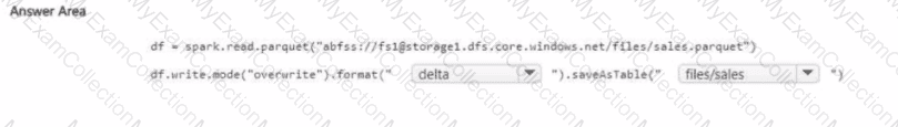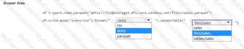 Using a notebook in Workspace1, you need to load the content of the file to the default lakehouse. The solution must ensure that the content will display automatically as a table named Sales in Lakehouse explorer.