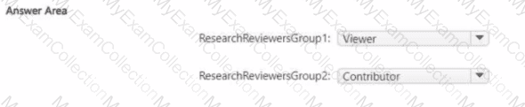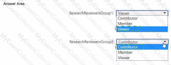 Which workspace rote assignments should you recommend for ResearchReviewersGroupl and ResearchReviewersGroupZ? To answer, select the appropriate options in the answer area.