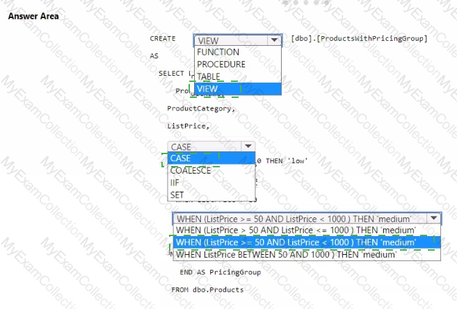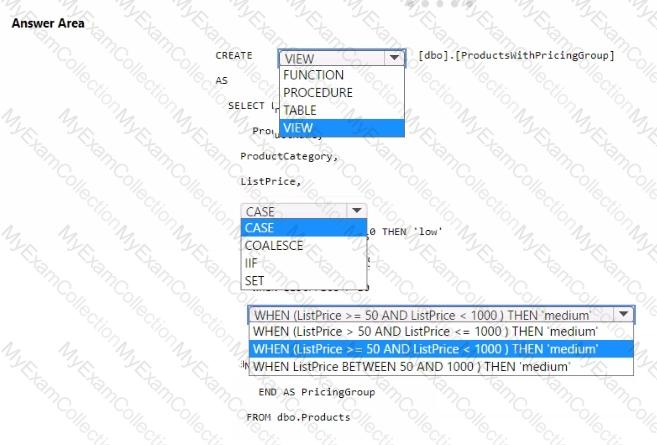 How should you complete the T-SQL statement? To answer, select the appropriate options in the answer area.