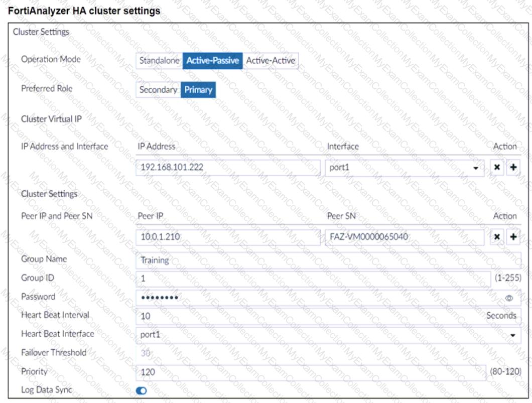 Refer to the exhibit, which shows the HA configuration settings of a FortiAnalyzer device.