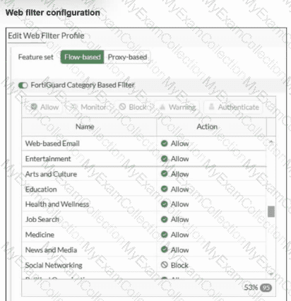 An administrator configured the Web Filter Profile to block access to all social networking sites except Facebook. However, when users try to access Facebook.com, they are redirected to a FortiGuard web filtering block page.