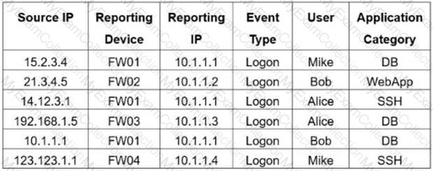 If you group the events by Reporting Device, Reporting IP, and Application Category, how many results will FortiSIEM display?
