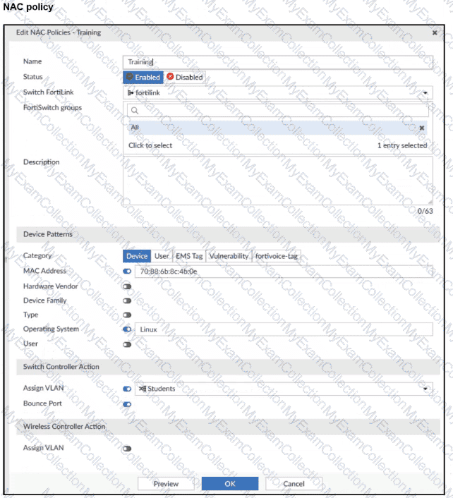 A NAC policy has been configured to apply traffic that flows through FortiSwitch port 2. Traffic that meets the NAC policy criteria will be assigned to the Students VLAN. However, the NAC policy does not seem to be taking effect.